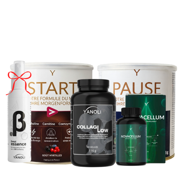 Discover Boost Balance, the ideal set to strengthen your cells and stabilize your weight during the final phase of your transformation. This set includes Start, rich in B vitamins, which activates your energy for an effective but controlled start. Pause supports you with essential ingredients like melatonin and lavender for optimal recovery, while also cleansing your gut flora with natural biotics.